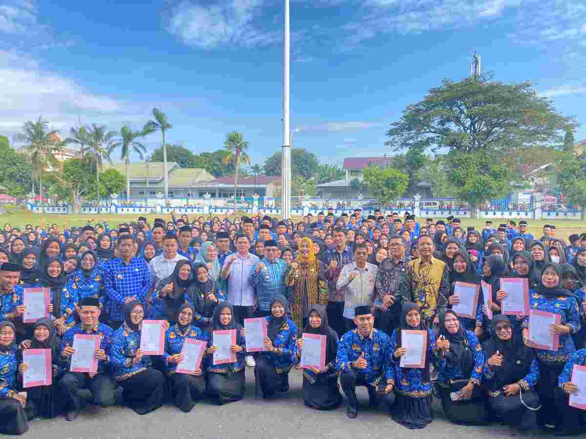 Majene,– Pemerintah Kabupaten Majene menyerahkan Surat Keputusan (SK) Pegawai Pemerintah dengan Perjanjian Kerja (PPPK) untuk tenaga guru, Kamis (4/9/2025). Acara yang digelar di halaman Rumah Jabatan Bupati Majene ini dipimpin langsung oleh Bupati Majene, Dr. H. A. Achmad Syukri Tammalele, S.E., M.M.