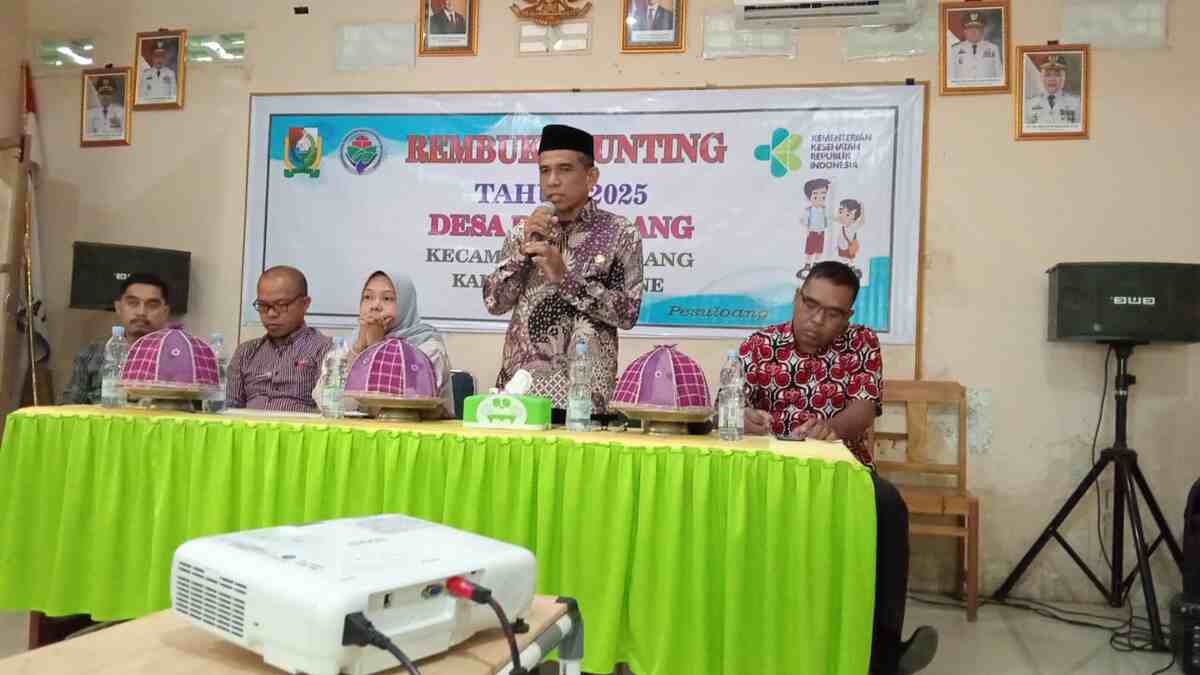 Dalam sambutannya, Pj Desa Pesuloang, Darami, SP menyampaikan pentingnya kolaborasi lintas sektor dalam upaya penanggulangan stunting. Ia menegaskan bahwa stunting bukan hanya masalah kesehatan, tetapi juga menyangkut kualitas generasi masa depan anak.