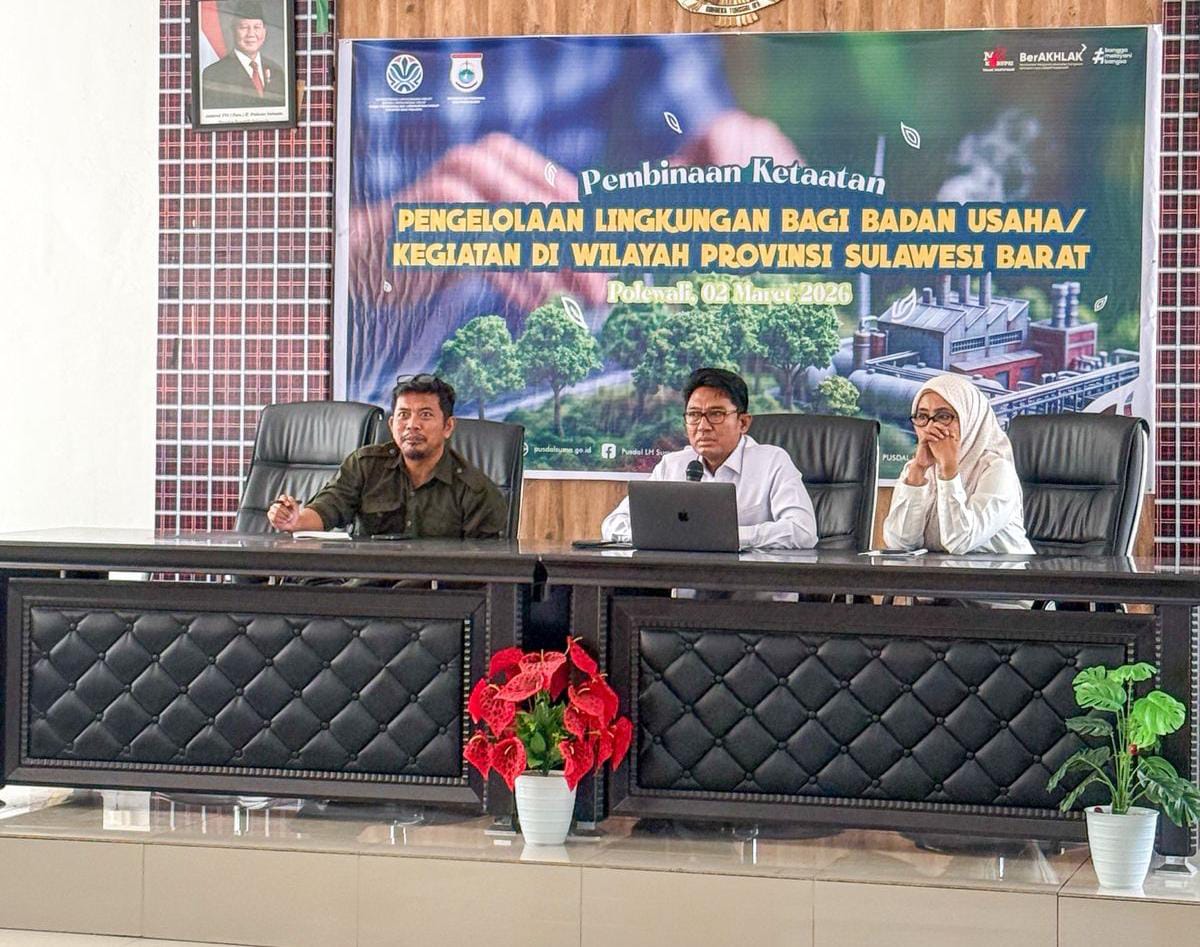POLEWALI MANDAR– Dinas Lingkungan Hidup dan Kehutanan (DLHK) Provinsi Sulawesi Barat bekerjasama dengan Pusat Pengendalian Lingkungan Hidup (Pusdal LH) Sulawesi dan Maluku, melaksanakan kegiatan Pembinaan Ketaatan Pengelolaan Lingkungan Hidup bagi Badan Usaha/Kegiatan di Wilayah Provinsi Sulawesi Barat pada Senin 2 Maret 2026.