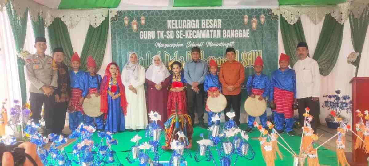 Majene,– Empat gugus sekolah se-Kecamatan Banggae turut memeriahkan peringatan Maulid Nabi Muhammad SAW yang digelar di pelataran SD Negeri 49 Pasangrahan, Kelurahan Pangali-Ali, Kecamatan Banggae, Kabupaten Majene, Sabtu (11/10/2025).