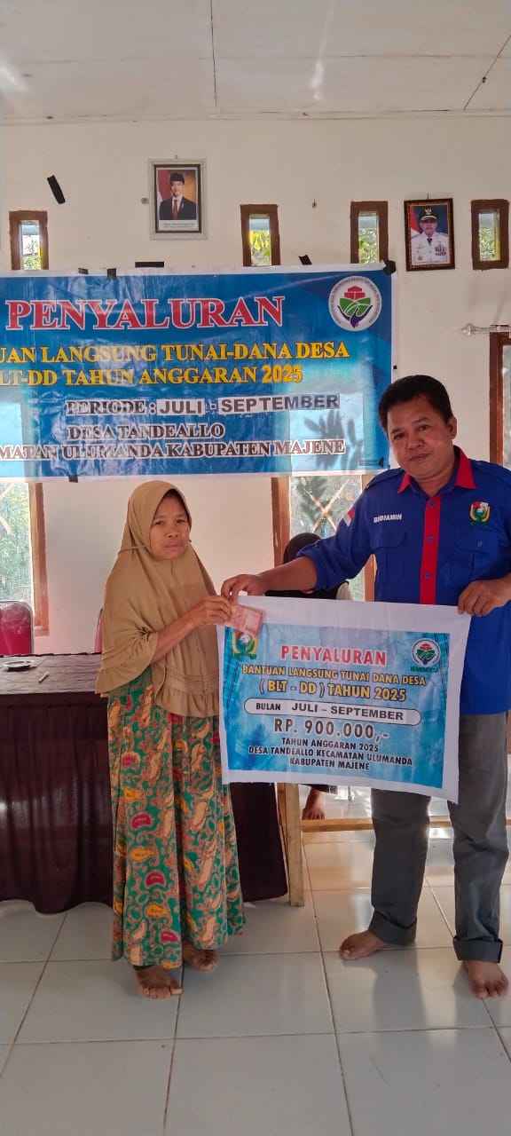 Majene, – Pemerintah Desa Tandeallo menyalurkan Bantuan Langsung Tunai Dana Desa (BLT DD) tahap III tahun 2025 kepada Keluarga Penerima Manfaat (KPM). Penyerahan berlangsung di Kantor Desa Tandeallo, Kecamatan Ulumanda, Rabu (3/9/2025).