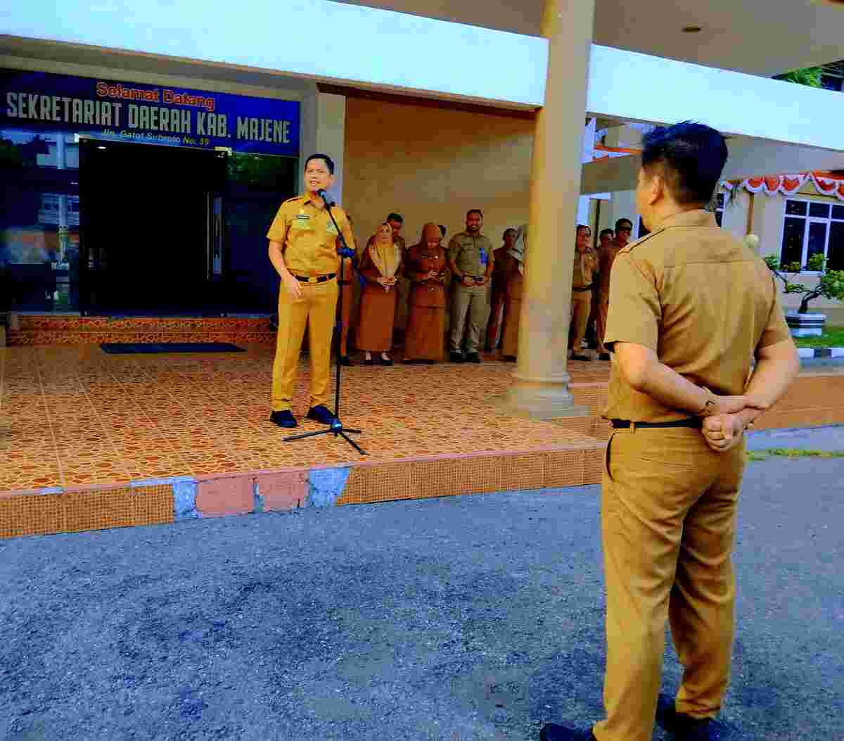 Fhoto : Sekretaris Daerah kabupaten majene, H. Ardiansyah, S. STP, saat memberikan arahan apel pagi.