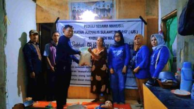 Majene, — Ketua Ikatan Jurnalis Sulawesi Barat (IJS) Wilayah Kabupaten Majene, Syamsuddin Kamal, menunjukkan kepedulian…