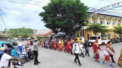 SD Negeri 2 Kampung Baru menggelar kegiatan karnaval atau pawai budaya