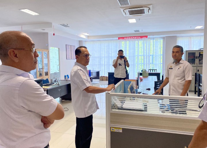 Jajaran pejabat terkait melakukan peninjauan langsung terhadap aktivitas pegawai serta kondisi lingkungan kerja di kantor Dispoparekraf.